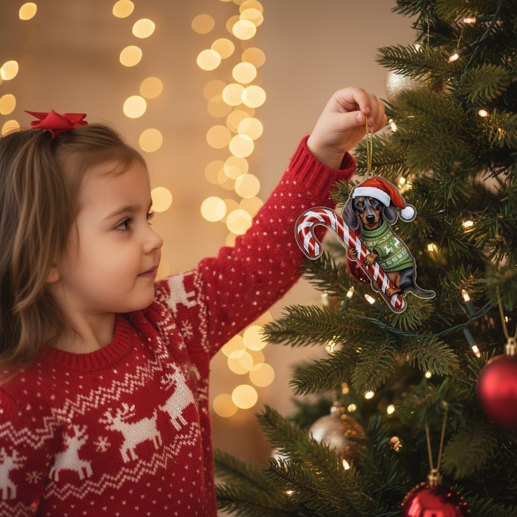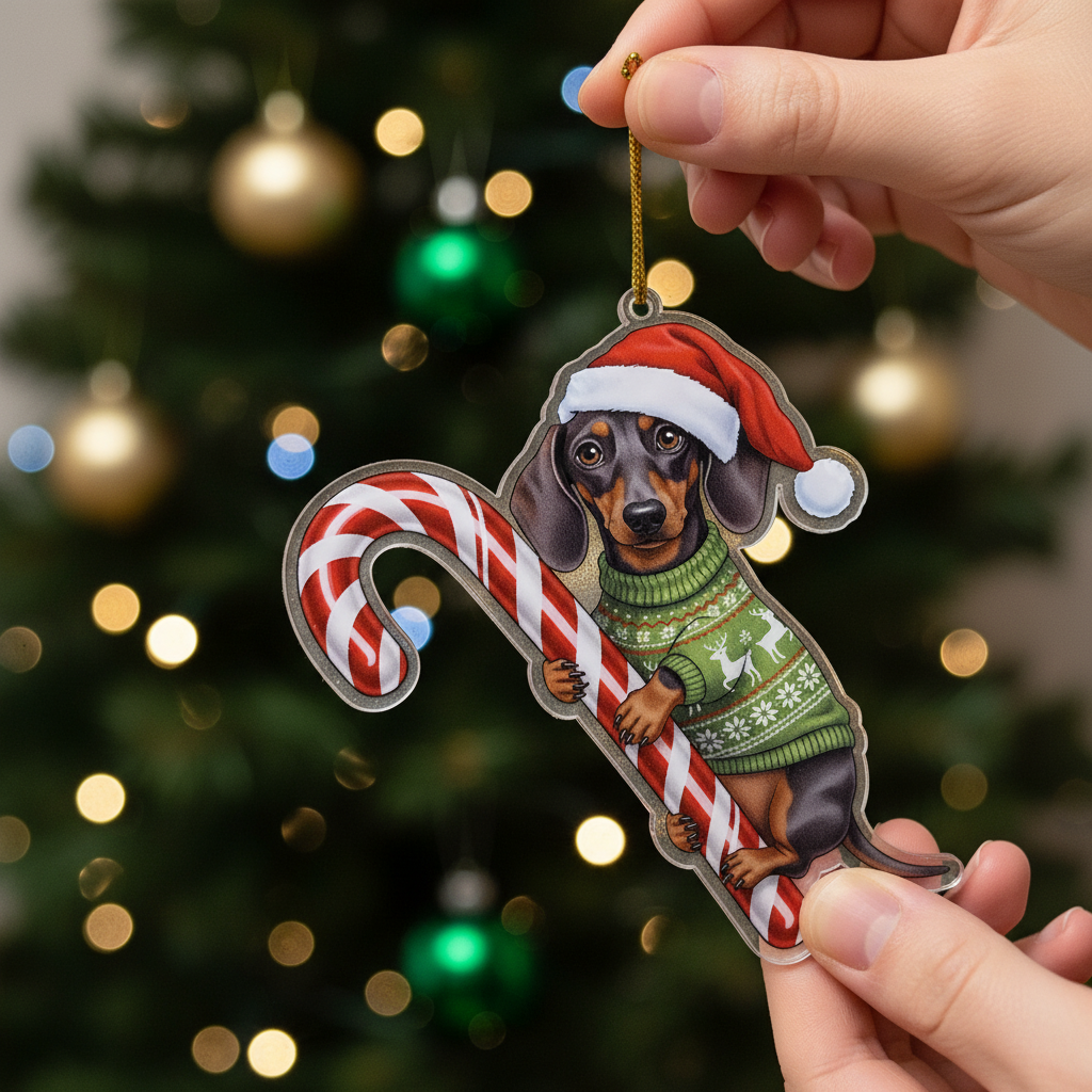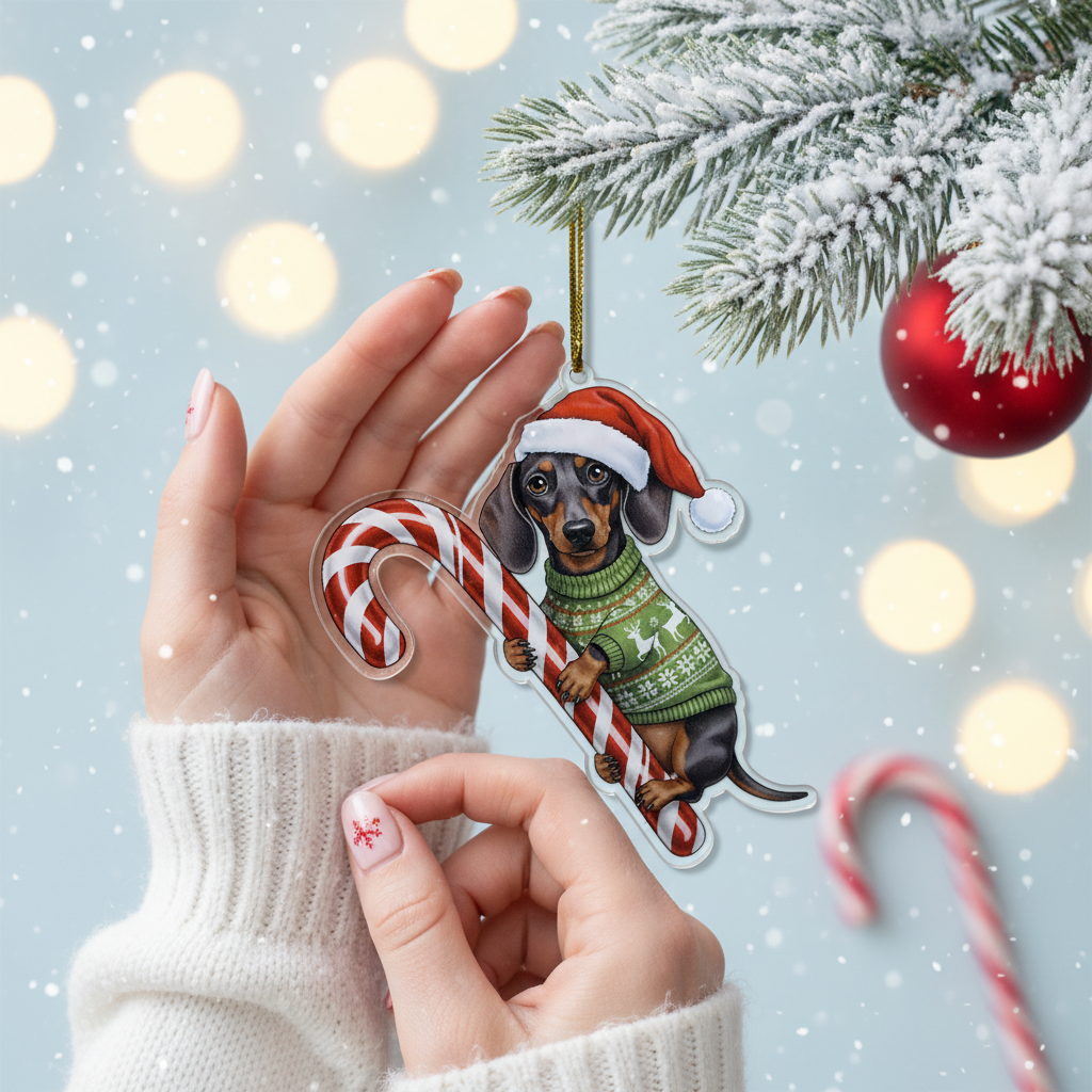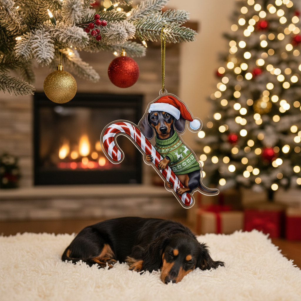 Cute Dachshund Cafe Dog Hugging Candy Cane 2D Flat Acrylic Ornament - Christmas Tree Decoration, Dog Lover Gifts 2025